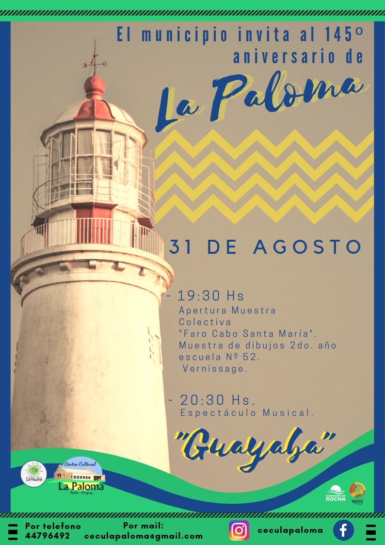 Sobre las actividades, Soba contó que “hoy abre la muestra a las 19:30 horas, vamos a tener el gusto de recibirlos, contaremos con la presencia de Rosario de Cuadra, que hace unos años grabó un disco con niños de la escuela 52 , en el 1999, fue un tema hechos con ellos, y que habla de La Paloma, va a estar Enrique Cabrera con sus alumnos del Centro Cultural, haciendo una canción a La Paloma, habrá brindis, una torta grande de cumpleaños y vamos a tener un espectáculo con el grupo Guayaba. La idea es que la gente participe, que se divierta, que sea un día de celebración. Y el domingo a las 9 horas el Alcalde junto con los concejales del municipio, estarán plantando en las inmediaciones del dentro cultural 25 arboles. Los invitamos a todos a esta actividad en la que venimos trabajando hace un tiempo y juntos celebrar este lugar tan bello que elegimos para vivir”.
