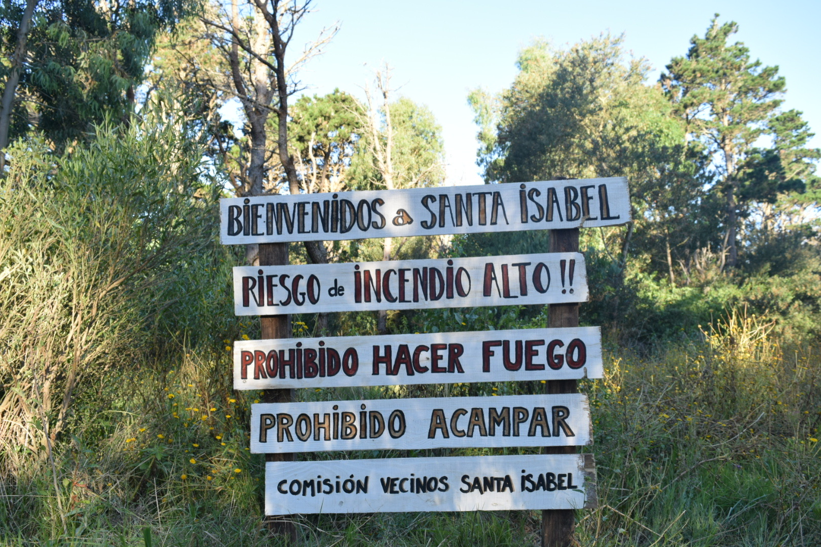 Santa Isabel está en un limbo en el que hay cosas que no quedan claras: “en cuestión de autoridades es raro, porque los carteles que dicen que es un parque son municipales, me los dio la Intendencia, pero la Intendencia no los reconoce, pero son carteles municipales, son los mismos carteles de madera es escritos como se usan en La Paloma”.