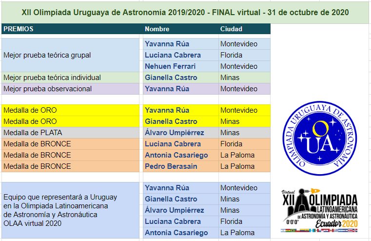 Hoy comenzó al XII Olimpiada Latinoamericana de Astronomía y Astronáutica (OLAA). Se trata de una importante competencia anual, dirigida a estudiantes de educación media de los países participantes y, aquí en Uruguay, lo hacen de liceos públicos y habilitados, que cumplan 18 años o menos durante el año en curso.