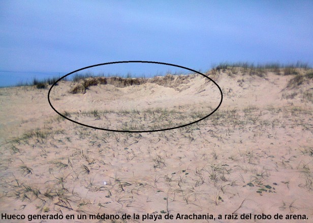 Esta situación no ocurre a escondidas de nadie, sino a plena luz del día es posible ver carros tirados por caballos o autos con trailer y hasta camiones, que se llevan la arena de las playas, dejando un gran hueco dificil de recuperar, que deteriora gravemente las playas. "Hace años que queremos cortar con esta situación, la Prefectura se tiene que poner más firme, y el juez cuando recibe el caso tiene que tomar medidas, incautar el vehículo o el carro y tratar de colaborar para que esto pare, porque hay lugares en los que el robo de arena es cada vez mayor y los médanos están por la mitad."