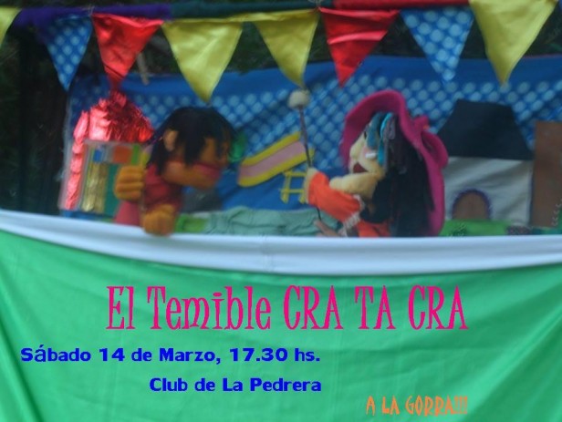 Mañana, sábado 14 de marzo, se presentará el espectáculo "EL TEMIBLE CRATACRÁ", una obra de títeres para toda la familia. La cita es a las 17.30 hs. en el Club Social La Pedrera. El espectáculo es a la gorra.