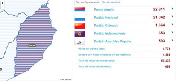 Luego de una serie de sondeos de dudoso origen, que llegaban a anunciar un triunfo del Partido Nacional, nuevamente el pueblo de Rocha le dio su apoyo al Frente Amplio. La fuerza política que gobierna Rocha volvió a ganar y se apresta a encarar su tercer gobierno departamental.