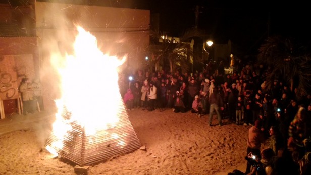 Los grandes lengüetazos dorados iluminaron y calentaron las caras del público, que seguía expectante la ceremonia pagana avivando el calor con bebidas. Antes, y durante la fogata, hubo un show de fuegos artificiales que adueñó del cielo pedrerense por unos segundos.