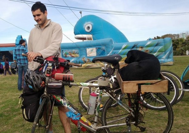 Un joven de Colonia recorre el Mundo en bicicleta acompañado por su perra Kara. Estuvo en Nueva Zalanda, Chile, Argentina, Brasil y ahora en su recorrido por Uruguay, visitó La Pedrera y la Paloma.