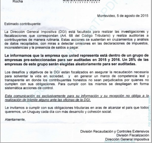 Lo afirma el Centro Comercial e Industrial de Rocha en una declaración pública motivada por una carta que la DGI le está haciendo llegar a los negocios del departamento referida a inspecciones o Auditorias que se harán próximamente en el Departamento.