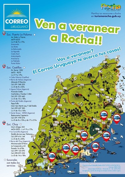 El Correo Uruguayo le propone a los turistas aprovechar que pueden hacer llegar sus cosas desde todo el país a los destinos de nuestro departamento en los que elijan vacacionar. Para eso, se dispuso de puntos de entrega y de admisión en varios balnearios y ciudades del departamento. Cabe destacar que algunos locales comerciales harán de nexo entre el Correo Uruguayo y el turista, donde podrán recibir y depositar los artículos que ingresan en esta promoción.