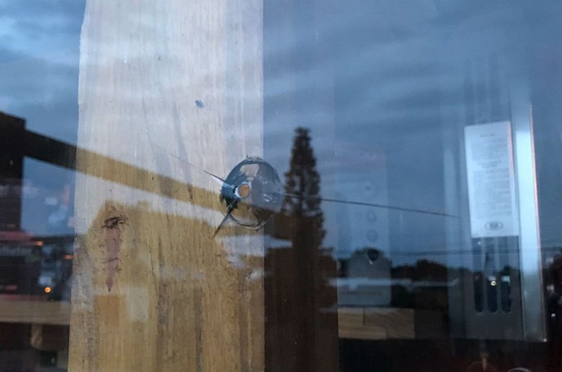 El frente de Barraca Colón amaneció hoy con rastros de disparos en el vidrio que da a la calle Sagitario, aunque las fuentes policiales consultadas por La Paloma Hoy no pudieron definir si se trata de balas de arma de fuego o aire comprimido las que ocasionaron los daños ya que, explicaron, se están realizando las pericias pertinentes.