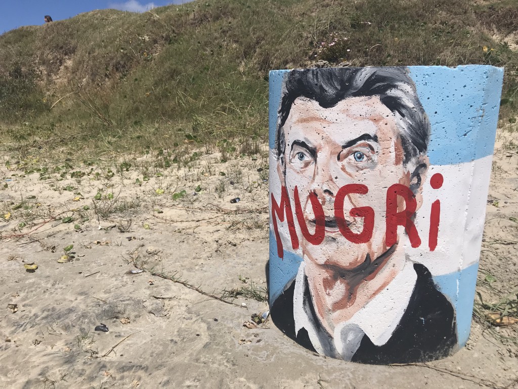 El artista intervino los tachos de basura ubicados en playa La Aguada con las imágenes de varios presidentes y un senador uruguayo, agregándoles un juego de palabras con sus apellidos: Mugri (Macri), Bolsonylon (Bolsonaro), Trush (Trump) y La caja (Lacalle Pou). El hecho generó una fuerte polémica en las redes sociales, en donde los usuarios reclaman que sean borrados por considerarlos una falta de respeto a los turistas que, en muchos casos, provienen de los países que presiden dichos personajes.