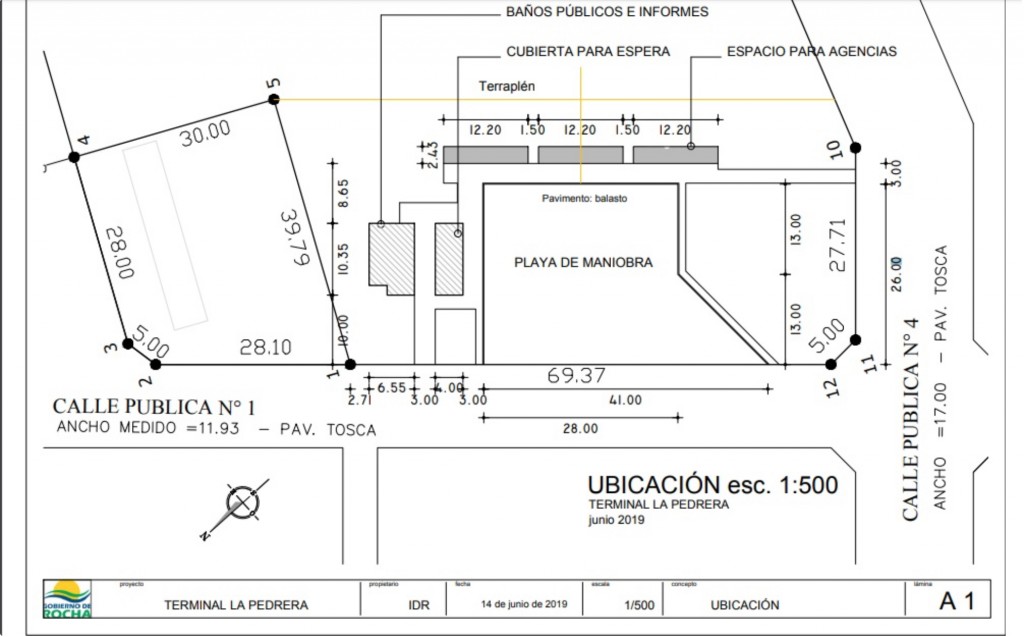 Imagen plano de la termional de ómnibus de La Pedrera.