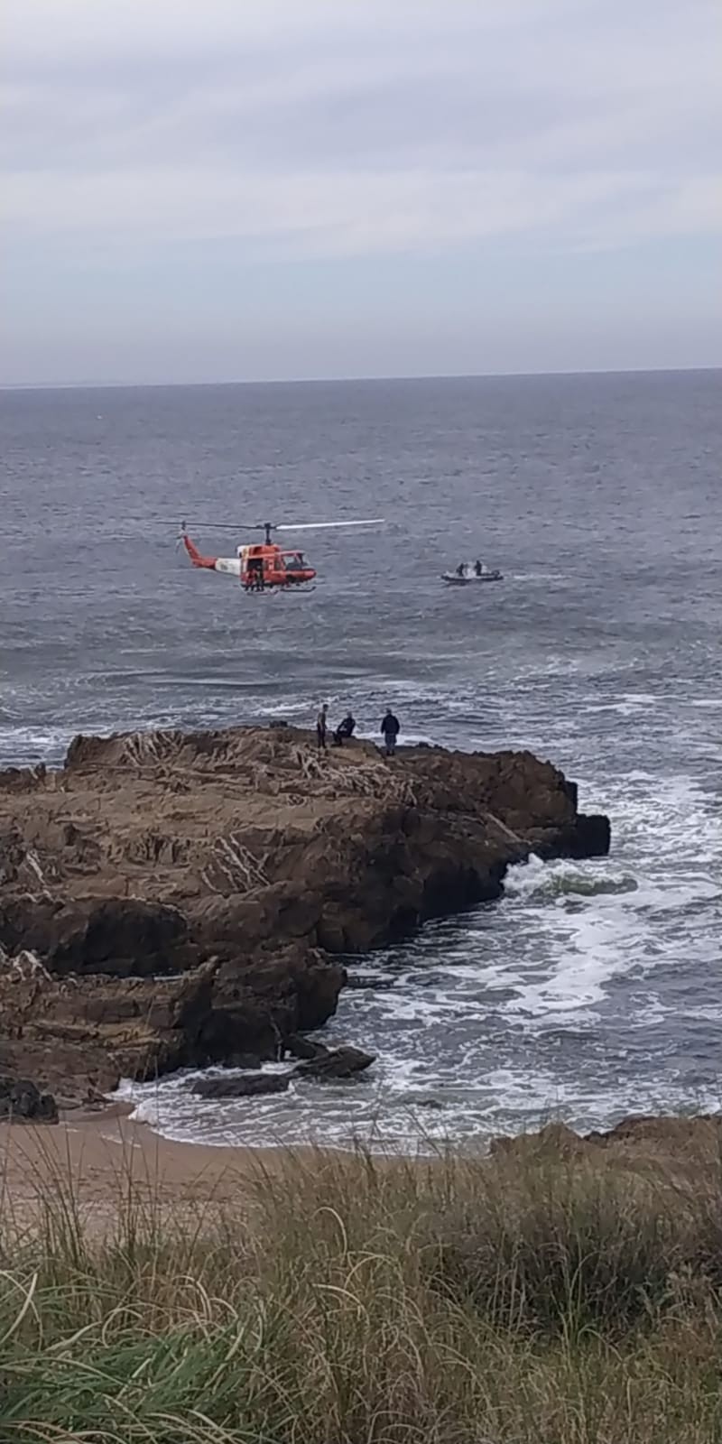 Pasado el mediodía, un helicóptero reemplazó a la avioneta y continuó el vuelo que, según pudo saber La Paloma Hoy, marcó una zona cercana a la caída del aparato (foto de portada) para ser revisada por los buzos, aunque aún no han tenido éxito.