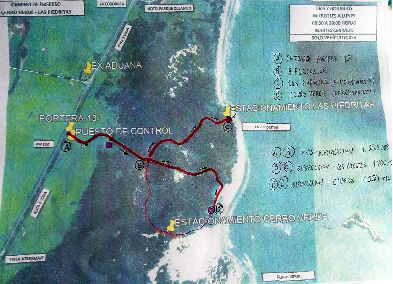La Dirección de Ambiente de la Intendencia de Rocha comenzó el 11 de febrero las obras de mejoramiento del camino de ingreso a la zona de Cerro Verde, para llevarlo de un ancho máximo actual de 6 metros hasta los 12 metros. De esa forma lo anunció a través de sus redes sociales hace algunas semanas.