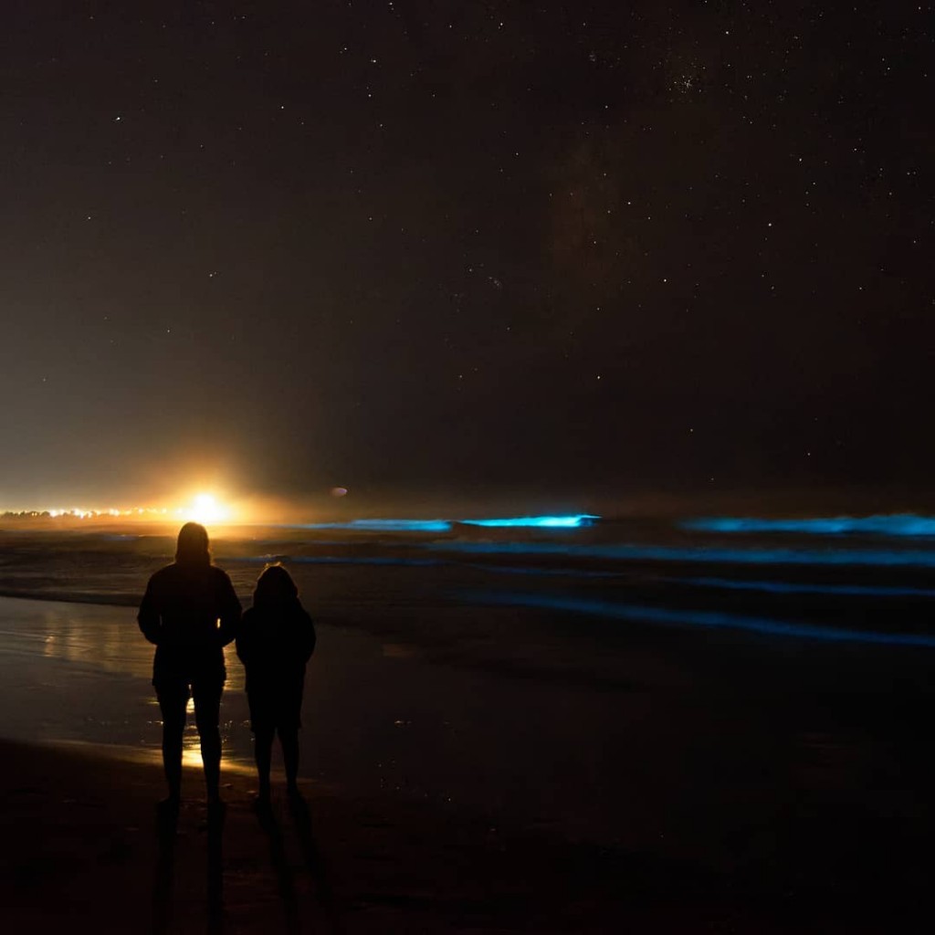 Noche de noctilucas en la costa de Rocha