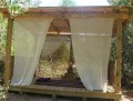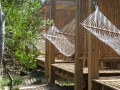Alojamiento en dos modalidades, Apart Hotel y Cabañas. El Apart Hotel cuenta con una habitación con baño privado y frigobar, con deck propio, para disfrutar de la naturaleza y los espacios al aire libre. Las habitaciones están dispuestas en módulos de 4 y 6 unidades, cada una con su propio deck, con total privacidad. Unas están junto a la piscina y el restorán, en el monte y la barranca, las otras, en la parte alta de la barranca, que ofrece una hermosa y cercana vista del mar.