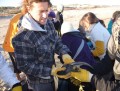 En diálogo con La Paloma Hoy el Alcalde Alcides Perdomo contó que el capataz de playa, Pablo Sena, “llevó adelante junto a algunos voluntarios, un operativo para devolver a su lugar natural las aves que se logró rescatar. No se pudo trabajar con todas las gallaretas porque no son fáciles de agarrar. Y otras volverán a la laguna con la corriente”.