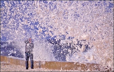 Espuma de mar simuló nieve en Punta del Este