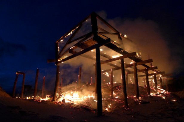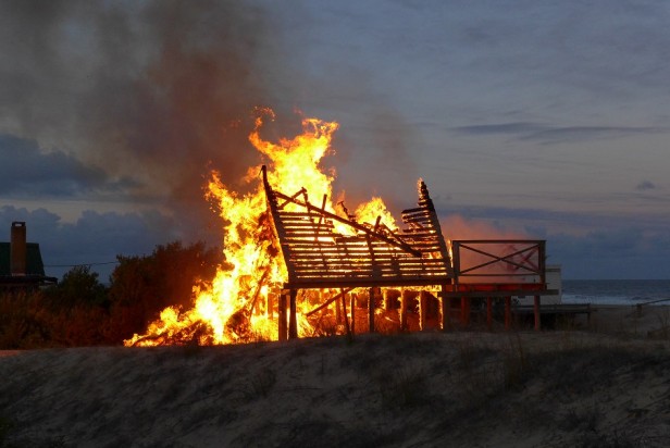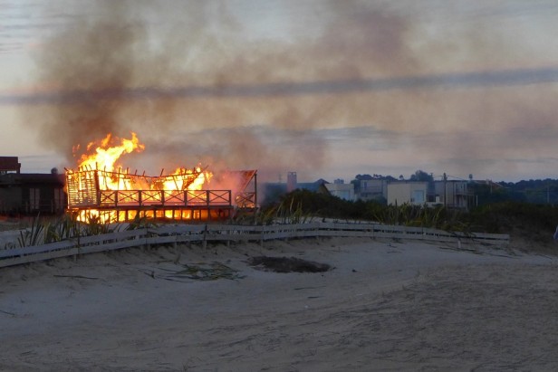 Por Adriana Pugliese / [email protected] // El viernes pasado, a las 17:30 hs. se desató un incendio en una cabaña nueva ubicada frente al mar, donde finaliza el Desplayado y comienza Punta Rubia. La vivienda, construida en madera, con techo de quincha, fue devorada completamente por las llamas en poco más de dos horas.