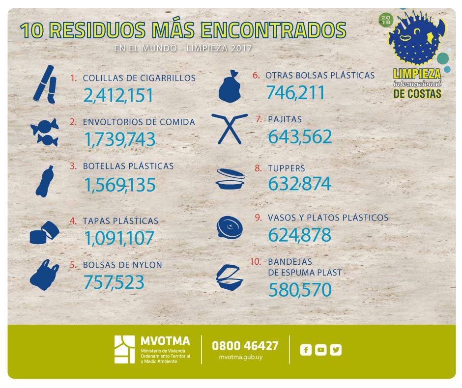 La Limpieza de Costas de 2017 permitió conocer mejor qué tipo de residuos llegan a nuestras playas: Colillas, envoltorios de comida, botellas, tapitas plásticas y bolsas de nylon fueron los más encontrados.