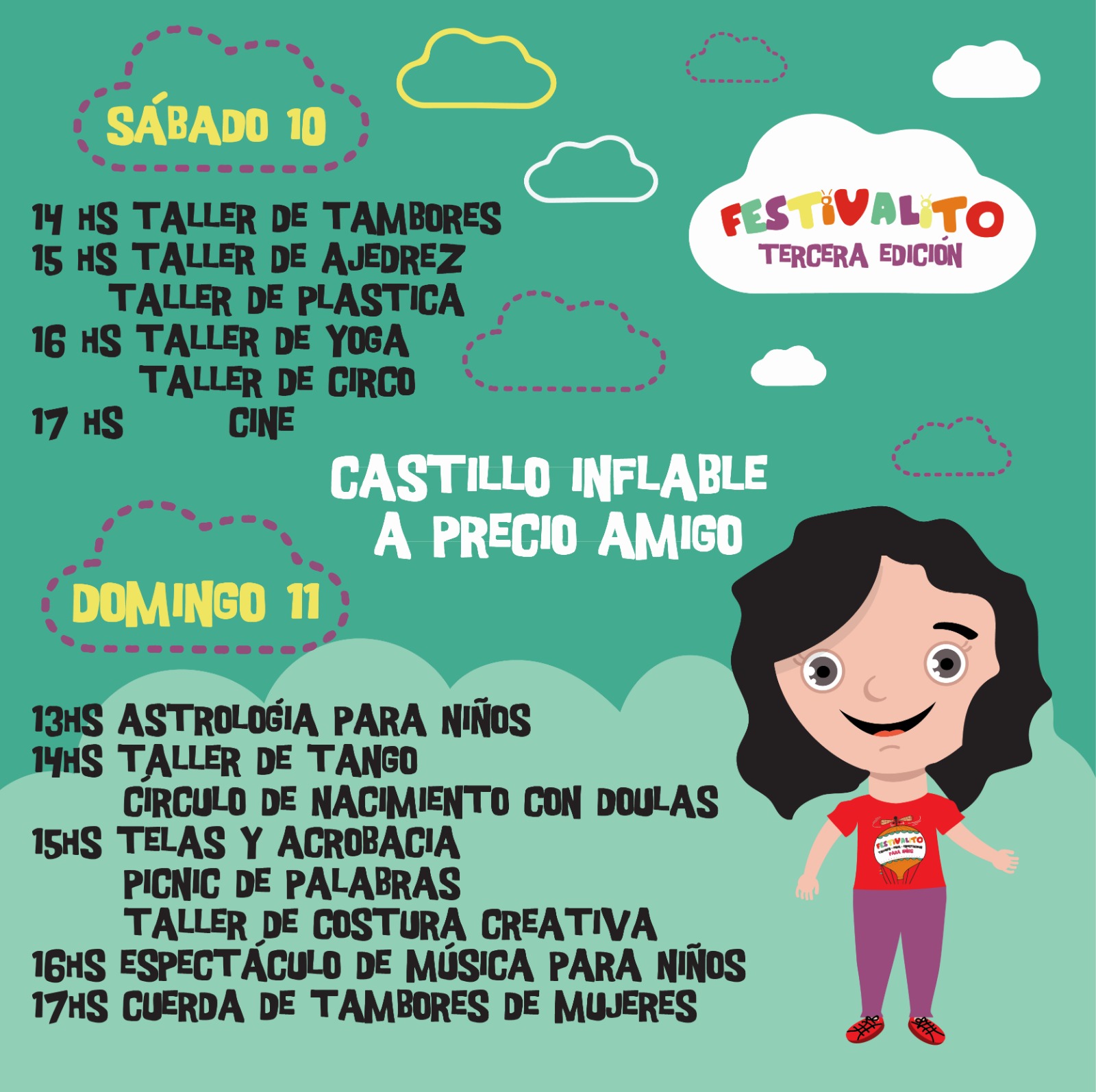El sábado 10 y domingo 11 de Agosto de 13 a 18 horas vuelve el FESTIVALITO a Casa Bahía. Se trata de la tercera edición de este evento pensado para topda la familia.