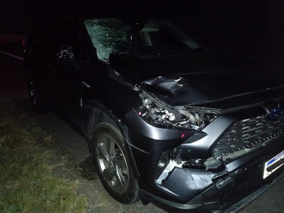 Así quedó la camioneta Toyota que embistió al hombre en la ruta. Imagen RochaalDía