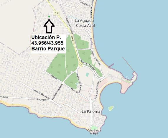 Padrón 43.955. Buen terreno baldío con un área de 525 mts. Cuenta con 15 metros de frente por 35 metros de fondo según plano de Agrimensor.