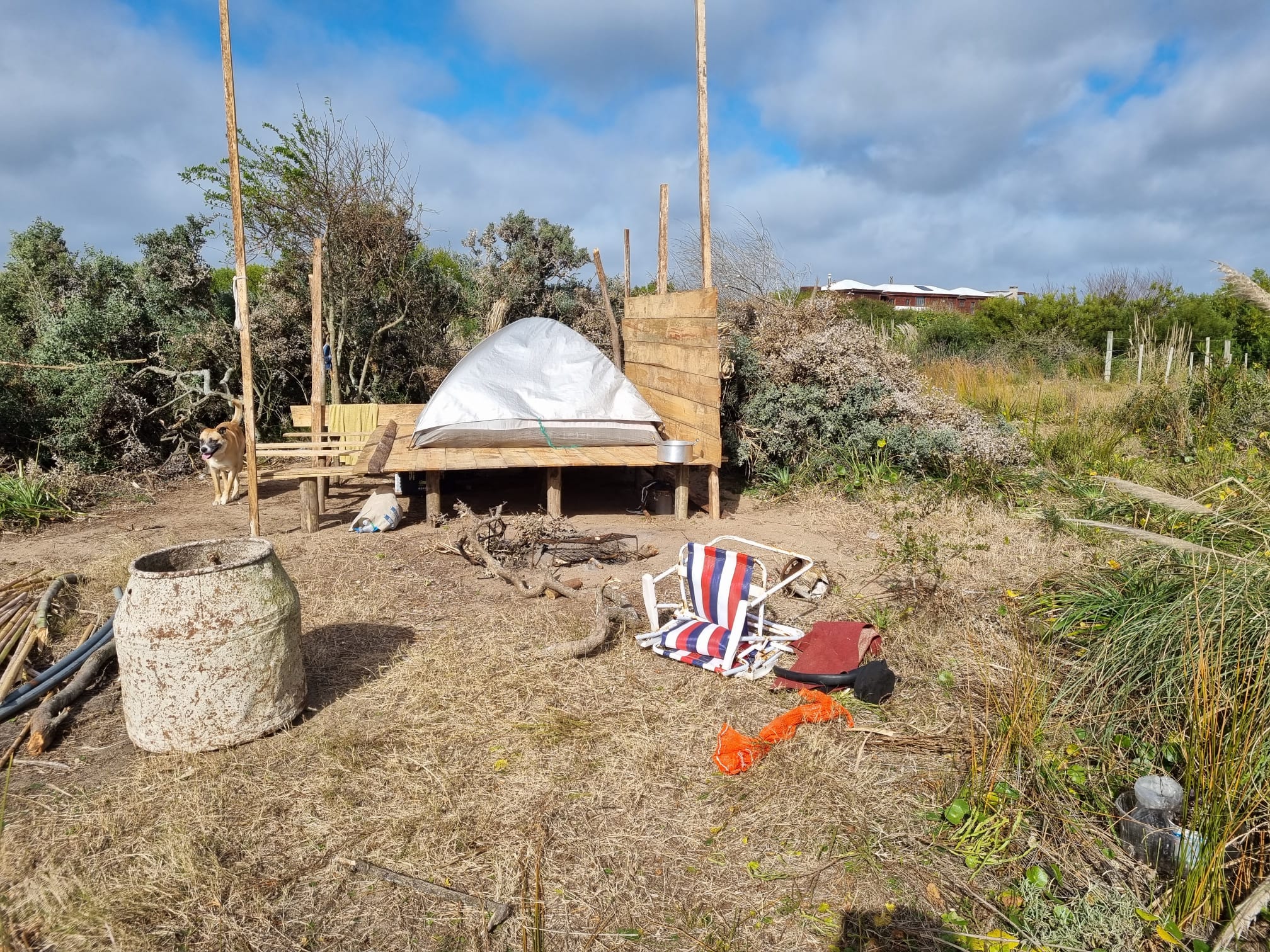 Hoy hicieron una recorrida por la zona junto a personal de la comisaría 11a de La Paloma y encontraron carpas y viviendas precarias hechas con bolsas, cartón y maderas. Según pudo saber La Paloma Hoy, los terrenos están en dos manzanas ubicadas en primera línea frente al mar, en el límite entre Punta Rubia y Santa Isabel.