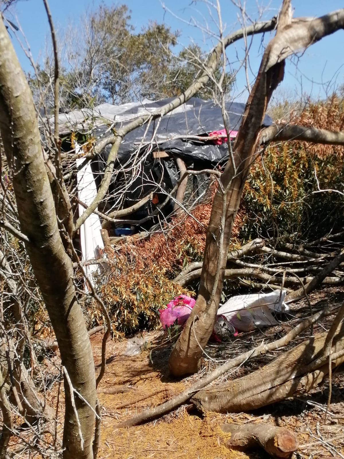 Esta mañana, la policía realizó una recorrida por la zona denunciada como ocupada, a la que resulta difícil acceder si no se conoce bien el lugar “ellos están en la mitad de la manzana que no da a la playa, tratan de esconderse, si no ingresas por uno caminitos que hay, no los ves, lo único que se ve desde afuera son unos palos, pero cuando entras a la manzana, debajo de las acacias, tapados, es caótico, ahí armaron todo”, explicó una de las denunciantes a La Paloma Hoy.