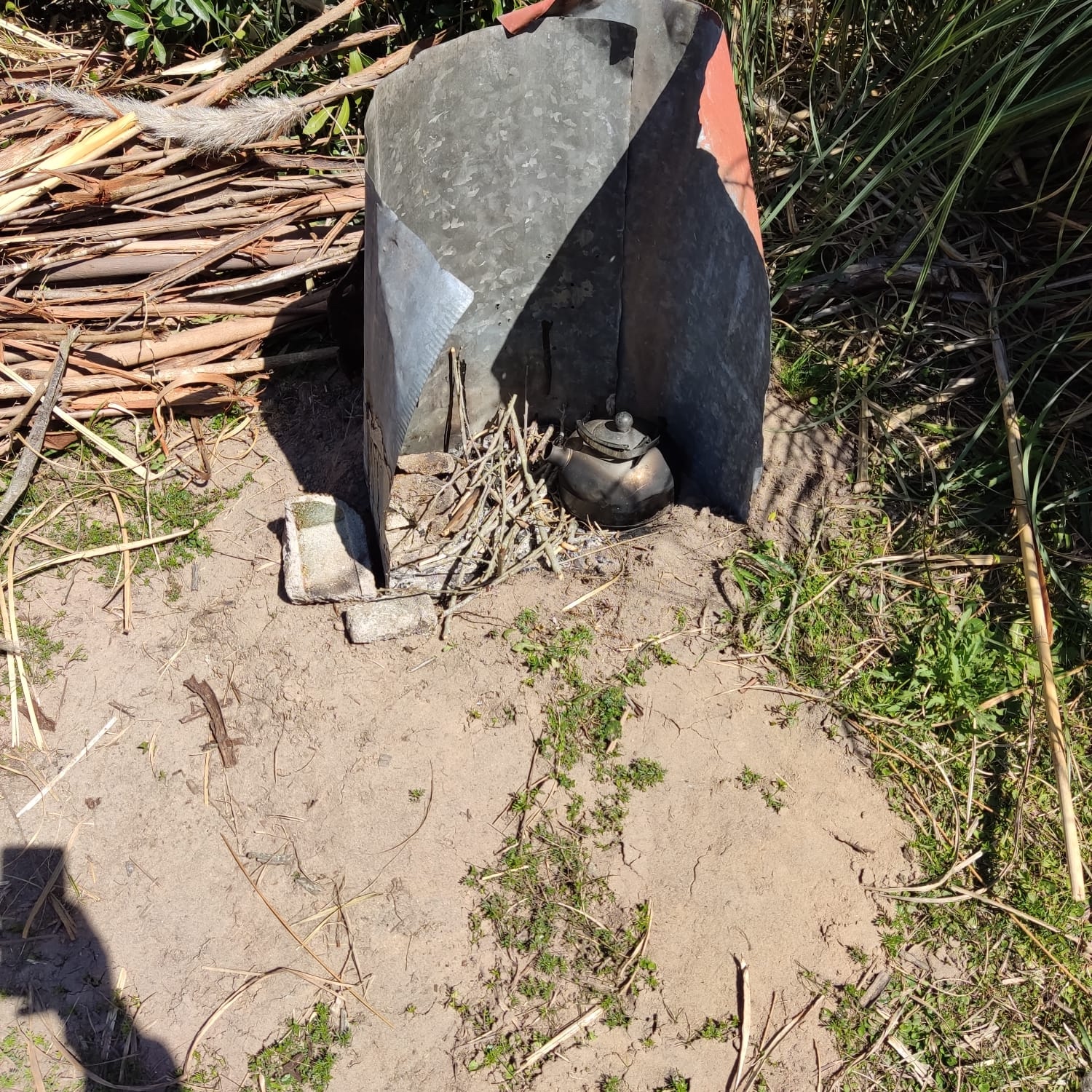 Una caldera en un fogón precario