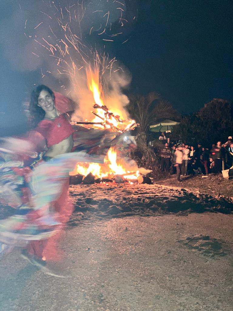 Desde temprano, la feria y los espectáculos comenzaron a dar color a la tarde y los tambores de la Santa y la danza de Noos, le portaron música y encanto al calor de las pequeñas fogatas.