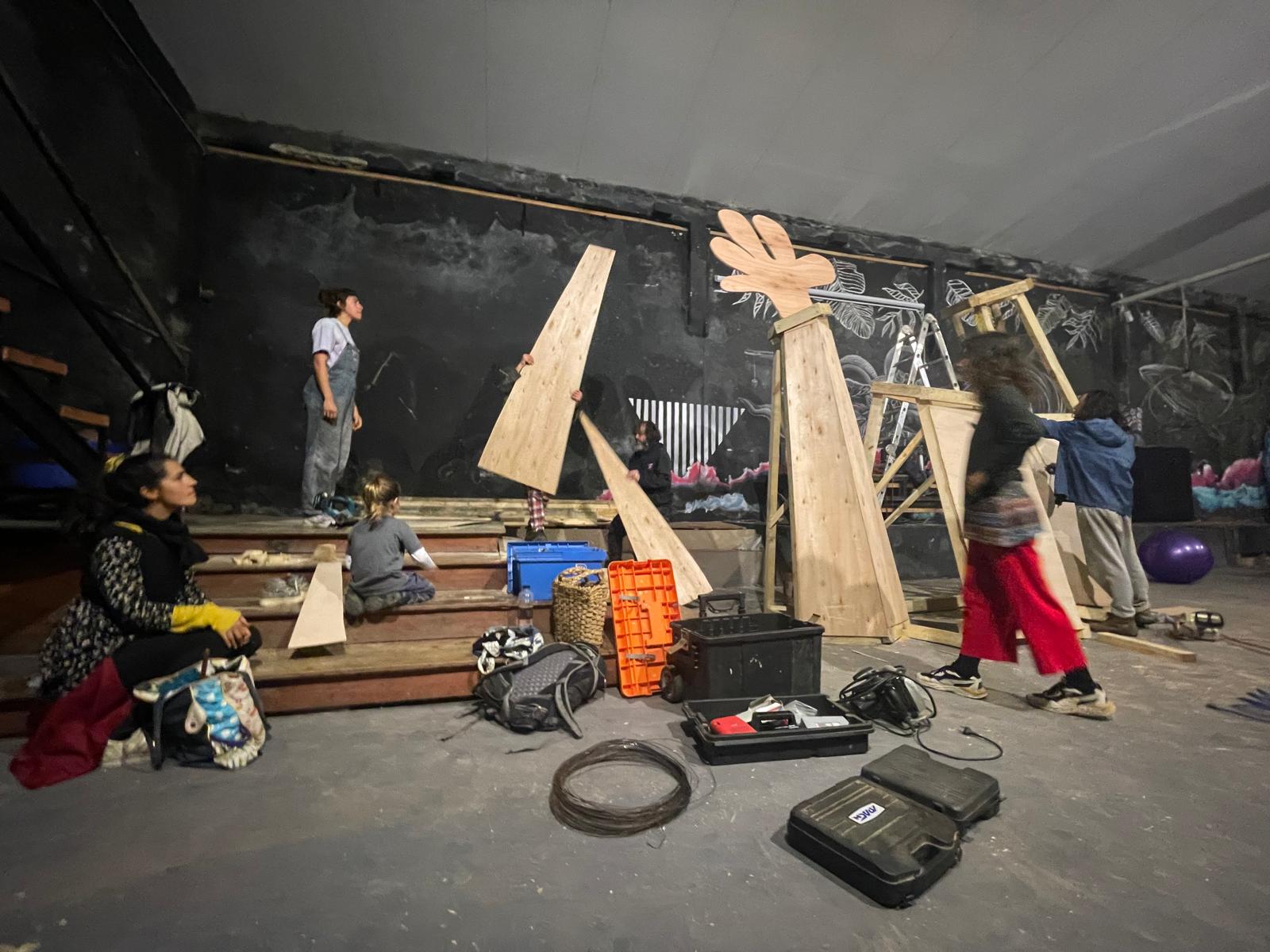 El grupo de trabajo está compuesto por una veintena de vecinas y vecinos con distintas experiencias, que se van volcando a trabajar colectivamente en la obra que arderá el próximo fin de semana “en este momento nos encontramos en pleno proceso de construcción, trabajando con madera, papel, placas y algodón otro material reciclado y combustible”, aseguró el artista.