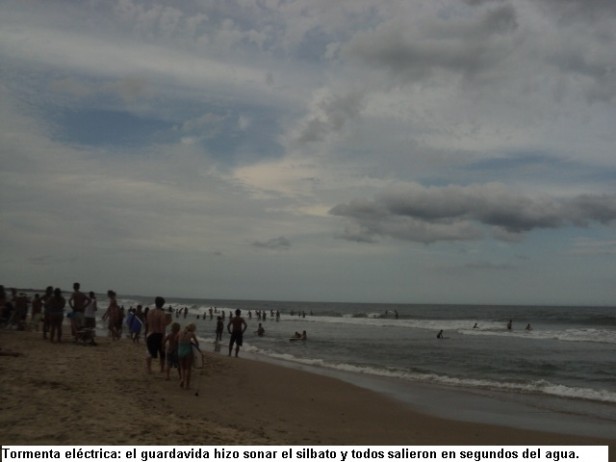 Las espesas nubes de esta tarde, provocaron que el guarda-vidas del desplayado hiciera salir a todo aquel que se encontraba en el agua, para evitar inconvenientes por la inminente tormenta eléctrica que se insinuaba. En Argentina ya hay una bandera que se usa en las playas para anunciar estos eventos climáticos. Consejos útiles.