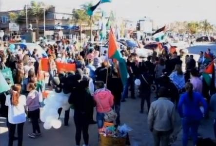 Bajo la consigna "No es una guerra, es un genocidio", cientos de manifestantes, vecinos de la comunidad palestina residente en Chuy, se manifestaron contra la situación que sufre el pueblo Palestino.