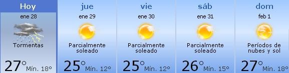 Este refresco será temporario y se espera que ya en la mañana de este jueves 29 de enero, el clima cambie y tengamos una jornada soleada y agradable con alguna brisa y una máxima de 25º, muy por debajo de los 32º que hemos vivido en las últimas horas.