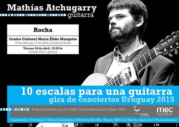 10 ESCALAS PARA UNA GUITARRA. Este proyecto fue premiado por los Fondos Concursables para la cultura del MEC.La cita es el próximo viernes, 10 de abril, a las 19:30hs, en la calle 18 de julio esq. 19 de abril, de la Ciudad de ROCHA. La entrada es libre y gratuita.