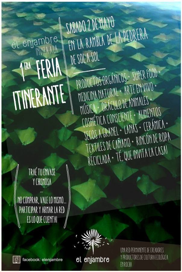 El enjambre es un colectivo creativo en acción, que articula una red de gente que produce vida y cultura ecológica en donde vive, es decir, en Rocha. Se articula por medio de una red multidisciplinar permanente de personas concretas que buscan producir algo especial de la manera más natural, saludable, sustentable, orgánica y artística posible. Buscan cristalizar un espacio virtual (conectando usuarios) y real (haciendo que productores y consumidores se encuentren, para siempre).