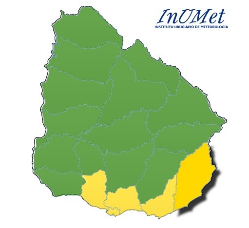 Inumet anuncia en su página web que a raíz del ingreso un sistema de alta presión al país, se generará un aumento de gradiente bárico, incrementando la intensidad del viento y favoreciendo la ocurrencia de rachas de viento fuertes principalmente en las zonas costeras del territorio nacional, con viento del Suroeste entre 60 -75 km/h y ocasionalmente podrà haber rachas superiores en áreas costeras del Este del país. El alerta rige desde las 18 horas de este viernes, hasta las 6 am del sàbado 4 de julio.