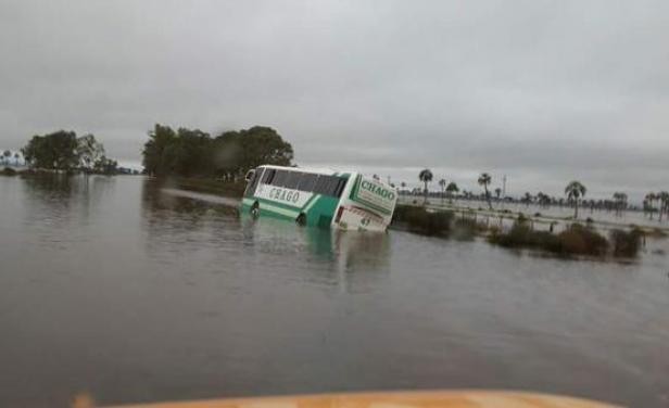 El paso en la ruta 15 entre Cebollatí y Lascano está cortado, pero el conductor del ómnibus intentó cruzar y el motor se apagó en medio del agua. Nadie resultó lesionado, pero Bomberos debió intervenir y ayudar a salir a las personas del vehículo con una retroexcavadora.