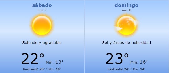 (La Paloma Hoy)  Sin dudas, la primavera ha aparecido de golpe y nadie pretende que se vuelva a esconder. Por eso, hay que aprovechar este fin de semana cargado de actividades y con el clima de nuestro lado. Según la pronosticadora Accuweather, que no nos suele fallar, para este sábado se anuncia una máxima de 21° con mucho sol y agradable, y el domingo la máxima se ubicará en los 23° con nubes e intervalos de sol.