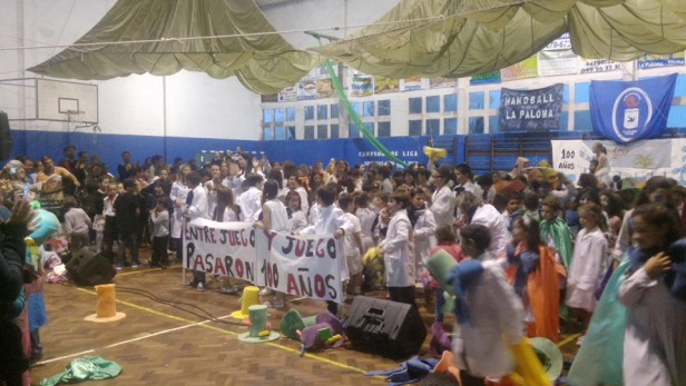 La escuela N° 52 de La paloma cumplió 100 años y realizó los festejos en el gimnasio ubicado frente al Parque Andresito. Los alumnos llevaron adelante diferentes representaciones que incluyeron bailes, rutinas gimnásticas, murga y hasta una evocación de las distintas etapas que fue travesando la escuela a los largo de las épocas mediante la recreación de los distintos juegos infantiles.