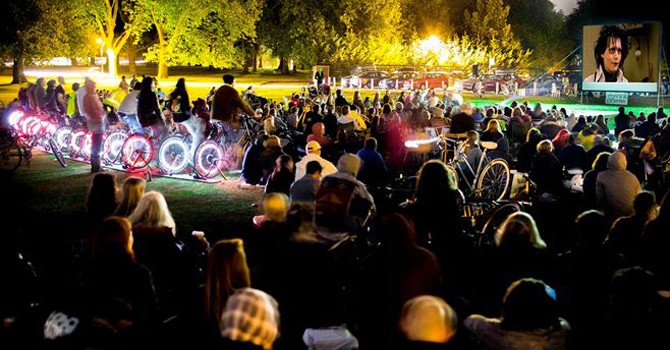 La experiencia, que une conciencia ambiental con cultura se hará presente hoy a las 21 en Av. Principal frente al tanque de OSE. Los que quieran pueden ir y pedalear para generar la energía eléctrica que hace posible la proyección. Se presentará la película HOME, del realizador francés Yann Arthus-Bertrand.