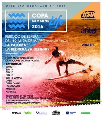 Entre el miércoles 23 y el domingo 27 de marzo se desarrollará la cuarta fecha del Campeonato Uruguayo de Surf "Copa Samsung Life". Entre La Paloma y La Pedrera se definirá el escenario en base a las mejores condiciones para correr olas.