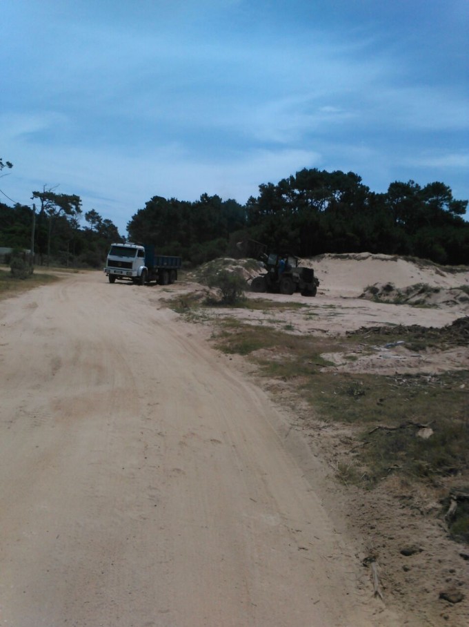 Durante todo el año pasado estuvo haciendo eso, contrató una máquina de Tracoviac que era traída por un camión doble zorra, que venía acompañado por otros camiones de la misma empresa (a veces hasta 10) que circulaban a bastante velocidad por medio de barrio Parque sin que nadie viera nada, destrozando calles que después pagamos todos. " Hay una ordenanza que prohíbe la circulación de estos camiones dentro del balneario".