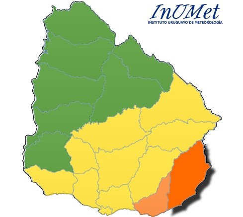El Instituto Uruguayo de Meteorología advierte por una “depresión atmosférica frontal que afecta a el país.” Por lo que declara el alerta naranja por fuertes vientos. Inumet explica que “en su desplazamiento al SE y posterior profundización en áreas de Mar Territorial Uruguayo, la misma generará  vientos muy fuertes entre 75 - 90 km/h con rachas que podrían alcanzar los 100 km/h y ocasionalmente superiores en áreas costeras del Sur y Este.