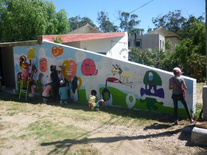 Alumnos de tercero y cuarto grado de la Escuela N°83 de La Pedrera, realizaron un mural en una actividad coordinada entre Marina, la profesora de Educación física; Serrana, profesora de artes y el apoyo de la maestra Adriana. El mural se puede apreciar en el Taller de Cerámica del Barranco, a 100 metros del tanque de OSE de La Pedrera. Imágenes gentileza Cerámica del Barranco.