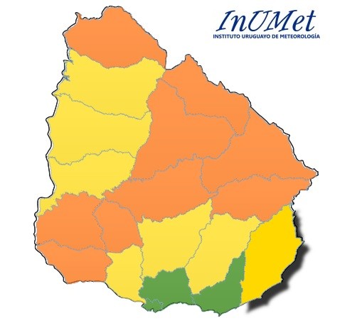 Lo anunció Inumet y tiene vigencia hasta las 6 de la mañana.