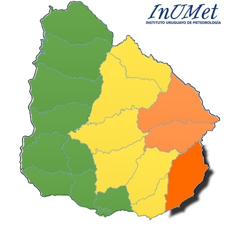 Inumet extendió el alerta y lo elevó de amarillo a naranja para algunos departamentos.