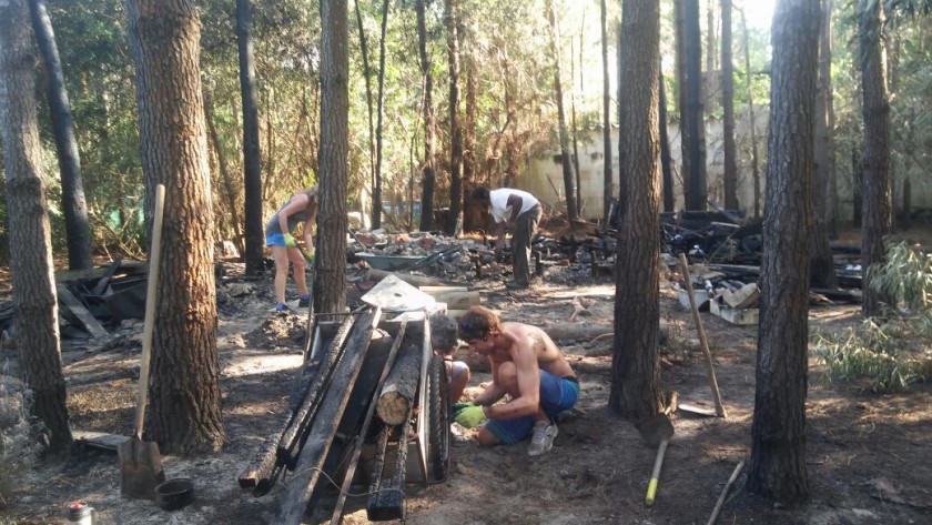 en horas complicadas Daniel de León, concido en la comunidad como "el sapo", recibió el apoyo de vecinos y amigos que se acercaron a dar una mano para reconstruir la casa de madera que ardió el domingo en Anaconda.
