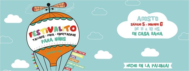 El próximo fin de semana, Casa Bahía será sede del "Festivalito", una propuesta para los más pequeños en la que podrán disfrutar de talleres, feria, espectáculos entre otras actividades. El evento, que rememora la propuesta del Festival de Peques que se realizaba hace algunos años, será los días sábado 5 y domingo 6 de agosto de 11 a 18 horas en Casa Bahía, frente a la estación Ancap La Paloma.