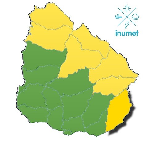 Treinta y Tres, Tacuarembó, Cerro Largo, Artigas Rivera y Salto también se encuentran comprendidos en esta advertencia. la vigencia es hasta las 17.45.