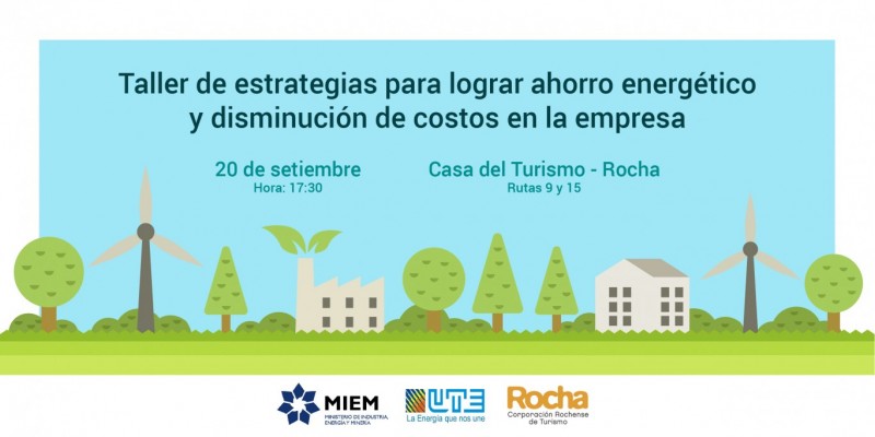 En el marco de la linea estratégica de trabajo "Mejora de la Competitividad Empresarial" que aborda la Corporación Rochense de Turismo y el trabajo de coordinación que se viene realizando con diferentes Organismos del Estado, les informamos que el próximo miércoles 20 de septiembre a las 17:30 horas en la Casa del Turismo de Rocha (rutas 9 y 15), se realizará un taller con asesores del Ministerio de Industria, Energía y Minería (MIEM) y UTE.