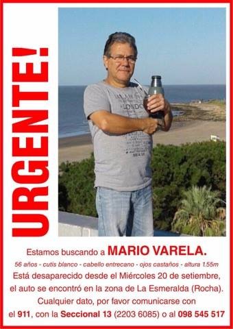 Se trata de Mario Varela, de 56 años, oriundo de Montevideo. La familia denunció su desaparición el pasado miércoles y el viernes se registró en un hotel de La Paloma, último lugar en donde fue visto. Su auto apareció incendiado en Vuelta del Palmar, departamento de Rocha.